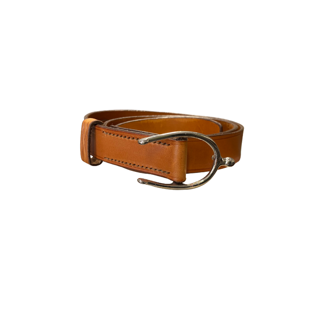 Mesurez votre ceinture préférée à l’aide d’un mètre à ruban, du bout de la boucle jusqu’au trou le plus utilisé (marque sur le cuir). Voir schéma ci-dessous.